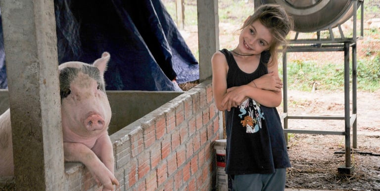Throughout the day, the children also had the chance to explore the farm on their own. They met and fed the cows, pigs, chickens, and goats. The joy of meeting new friends, playing with other children and learning alongside our volunteers made the day truly special.